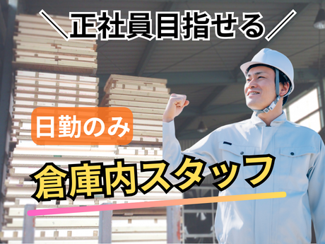 ◇日勤のみ!土日休みの倉庫内作業◇未経験の方、異業種から転職OK◇将来的に正社員で探している方は必見◇フォーク・玉掛け免許持ちの方、優遇